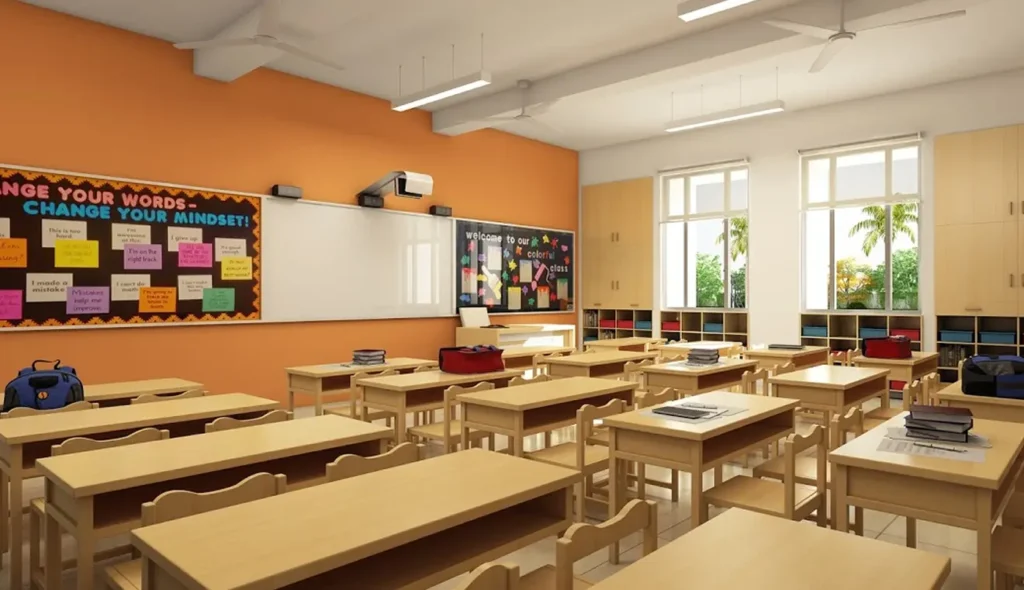 Fully digital classrooms equipped with interactive boards and AI-powered learning tools.
